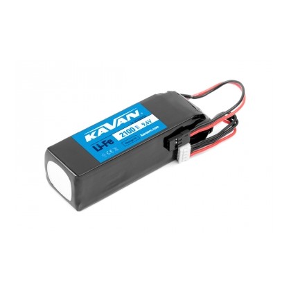KAVAN LiFe transmitter battery pack 9.6 V (3S) 2100 mAh 3C. Charge 0,5-1C, discharge rate 3C. JR/Hitec/UNI servo connector, JST-XH balance connector. Dimensions: 93x32x27,5 mm. Weight: 140g.